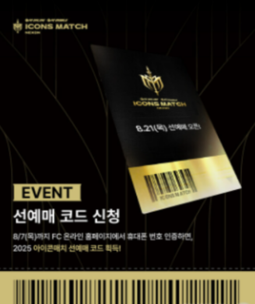 선예매 참여를 위해서는 8월 7일까지 'FC 온라인' 또는 'FC 모바일'에 최소 1회 이상 접속해 선예매 코드를 신청해야 하며, 8월 14일 오후 2시에 코드가 지급됩니다.