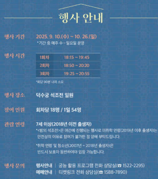 2025 하반기 덕수궁 밤의 석조전은 단순한 관람을 넘어, 고궁의 역사와 문화를 생생하게 체험할 수 있는 기회입니다.