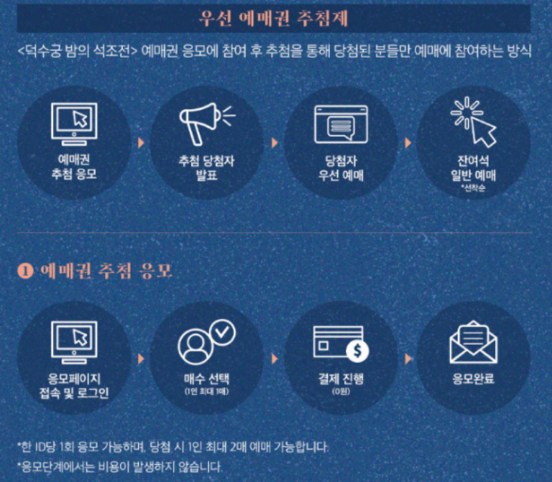 - 방법: 티켓링크 홈페이지 내 ‘덕수궁 밤의 석조전’ 예매 페이지