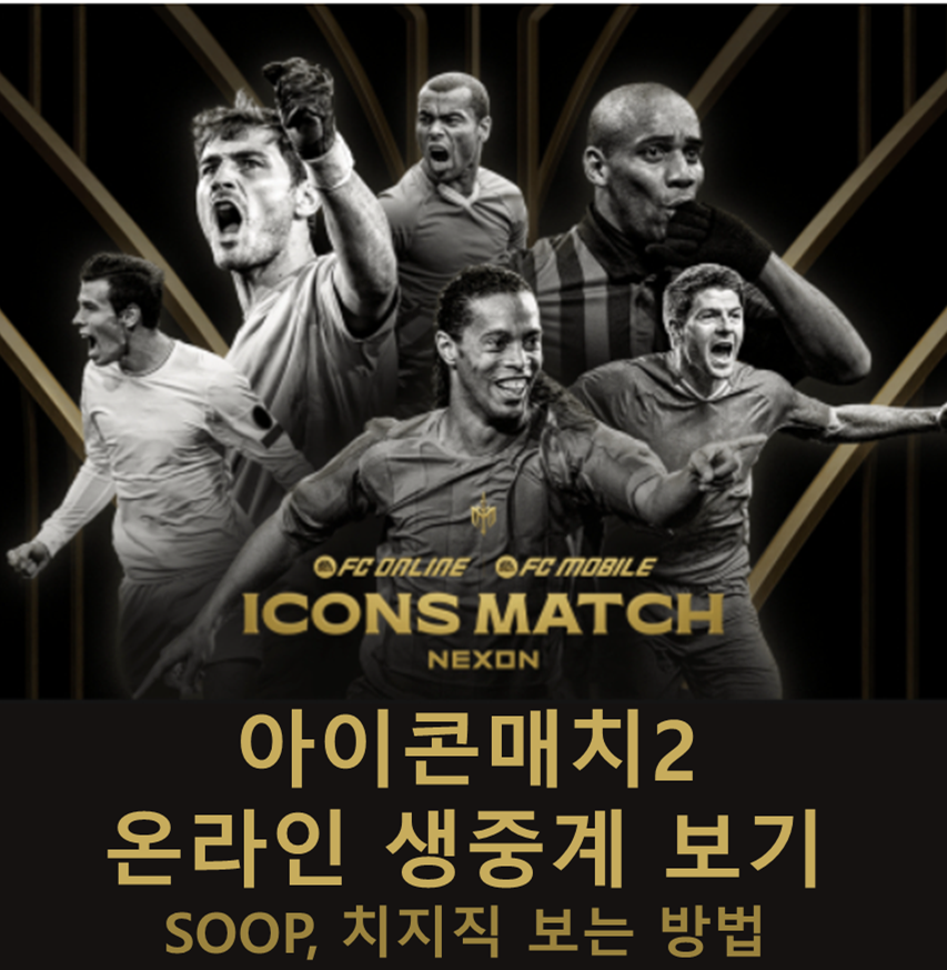아이콘매치2 온라인 생중계는 치지직(ZicZic)과 Soop 두 플랫폼에서 시청 가능해요.